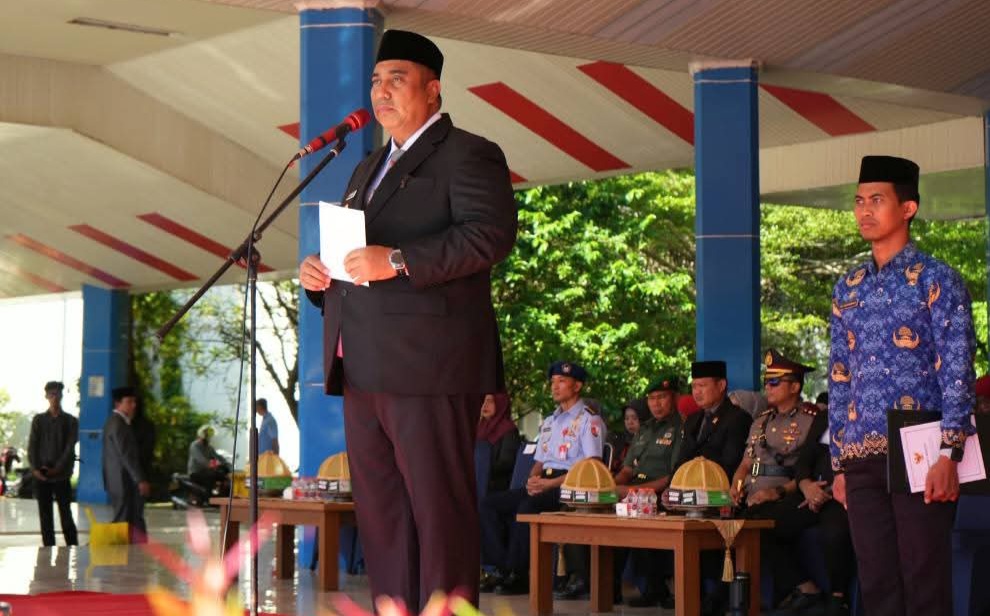 Dalam pelaksanaan upacara, Chaidir Syam membacakan sambutan seragam Menteri Pemuda dan Olahraga (Menpora).